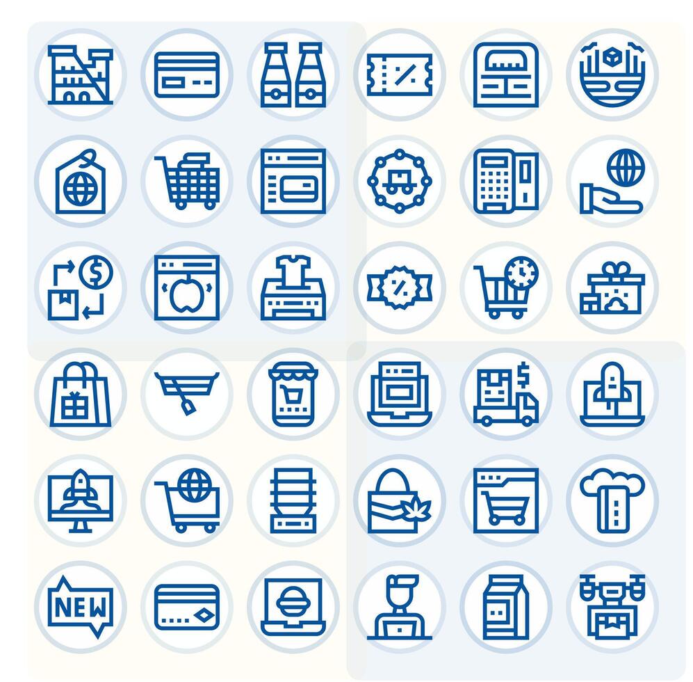 comercio electrónico icono caja de herramientas presentando 36 píxel optimizado alto resolución negrita línea elementos Vector Gratis