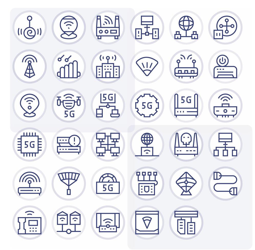 35 regular línea píxel Perfecto íconos hecho a mano para enrutador alto resolución aplicaciones vector