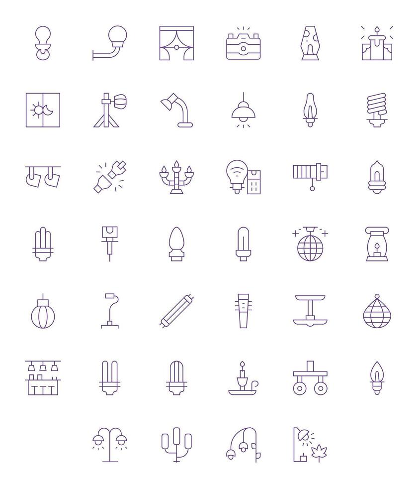 40 íconos para Encendiendo optimizado en monitor Perfecto alto resolución Delgado línea resolución vector