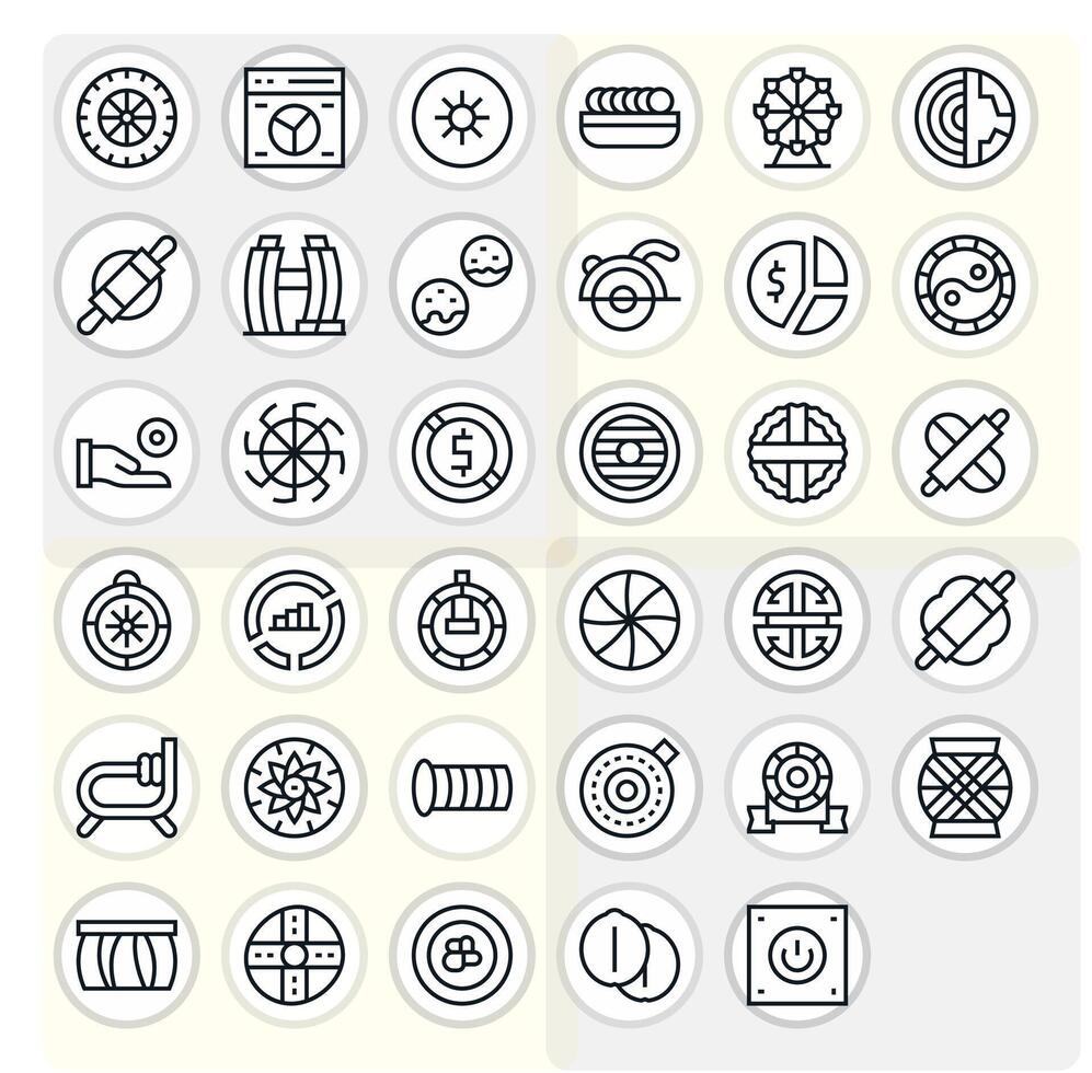 regular línea estilo circular íconos con 35 alto resolución cuadrícula equipado diseños vector