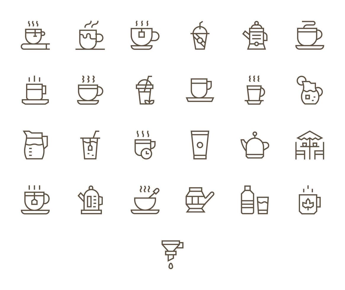 regular línea píxel Perfecto íconos desde té conjunto con 25 alto resolución íconos vector