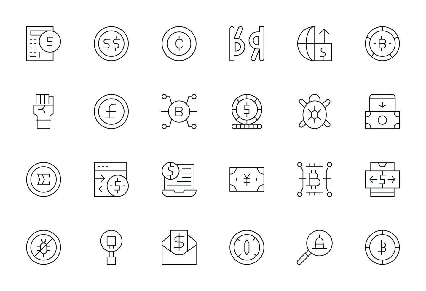 digital moneda icono conjunto con 24 Delgado línea alto resolución píxel alineado gráficos vector
