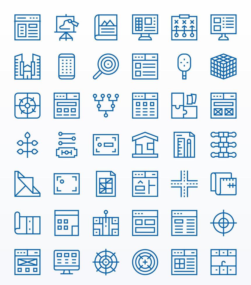 42 alto resolución regular línea íconos optimizado para diseño píxel alineado monitor vector