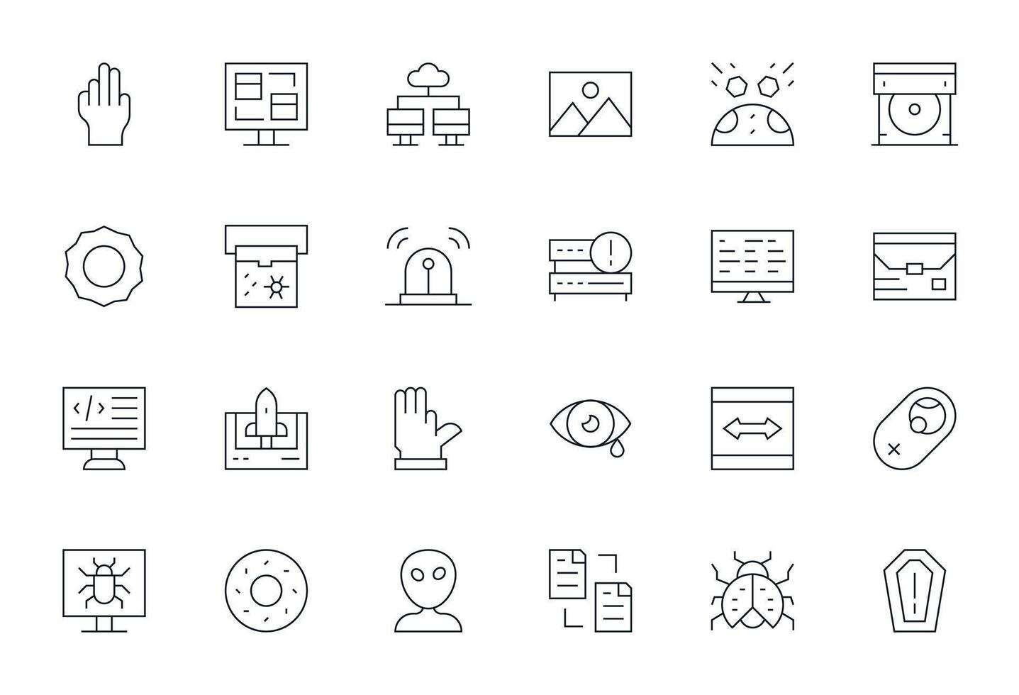 24 256x256 Delgado línea íconos para software con píxel optimizado precisión vector