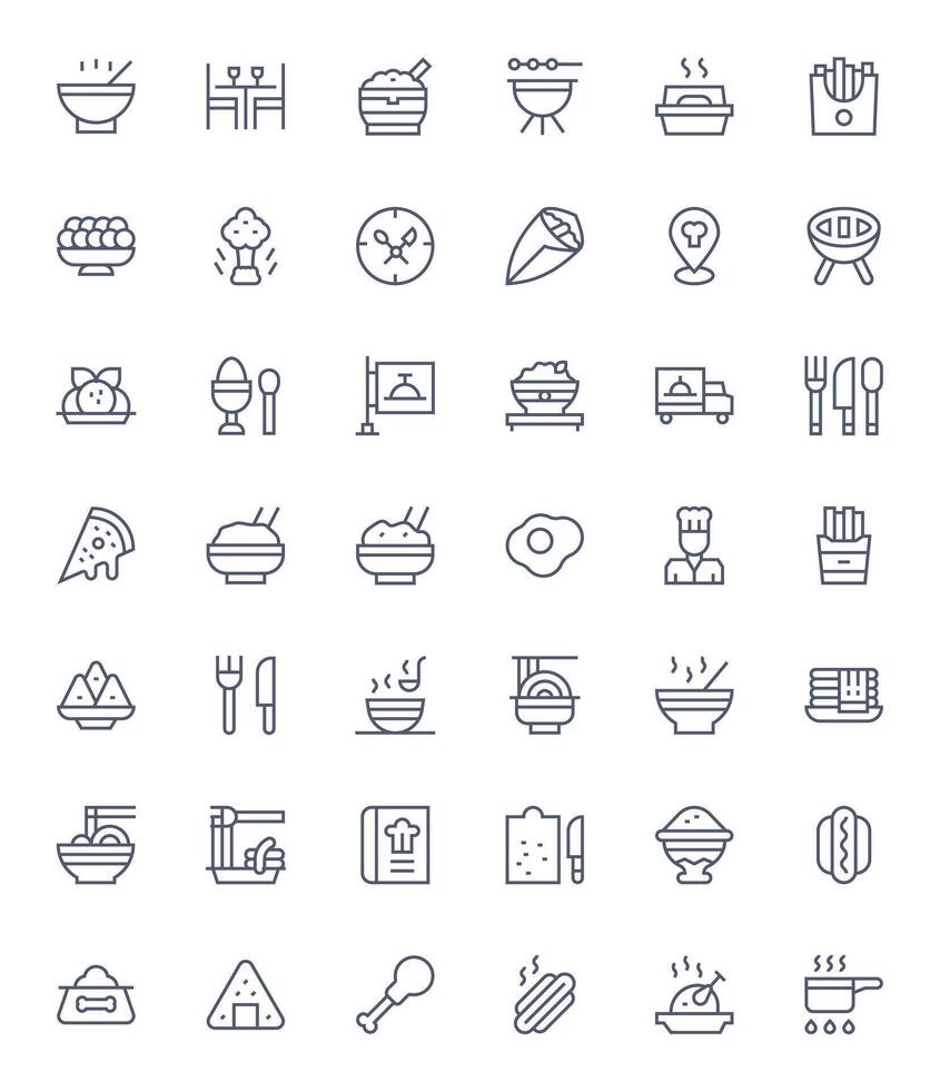 comida píxel optimizado conjunto con 42 256x256 regular línea íconos Vector Gratis