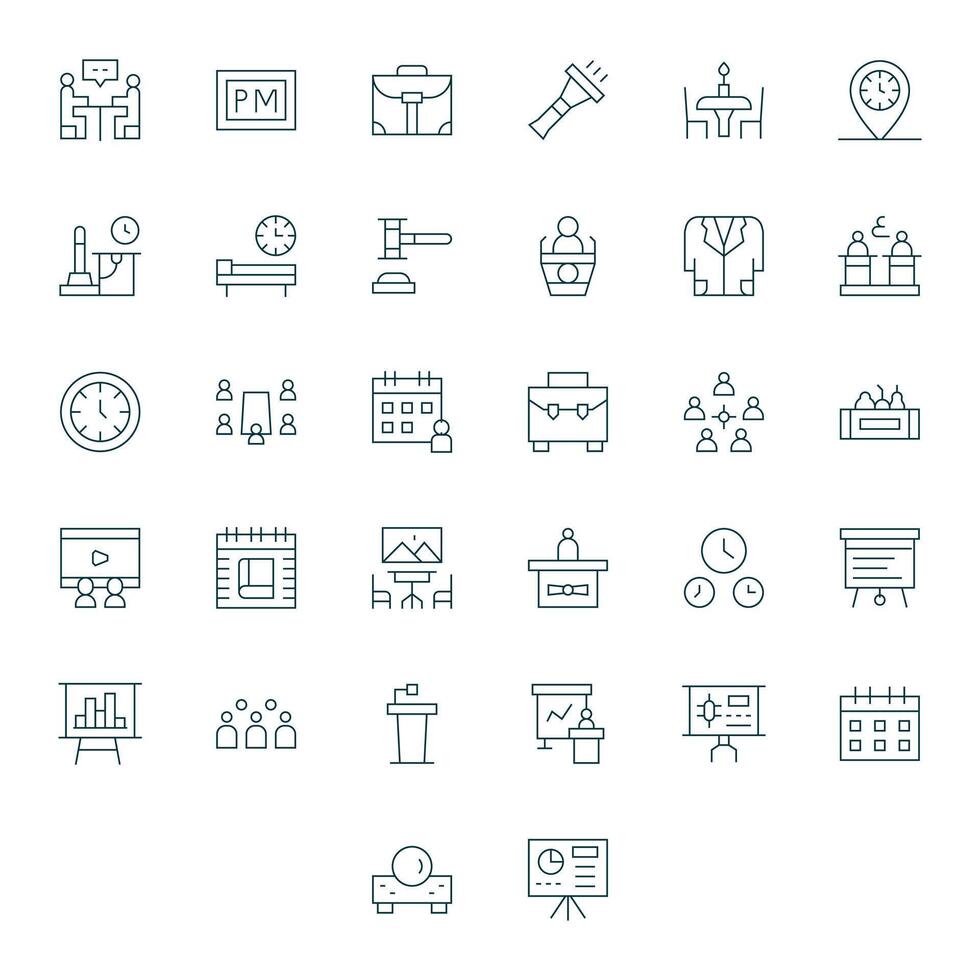 reunión píxel optimizado conjunto con 32 alto resolución Delgado línea íconos vector