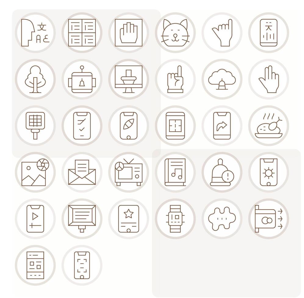 32 Delgado línea píxel alineado íconos para aplicación gráficos vector