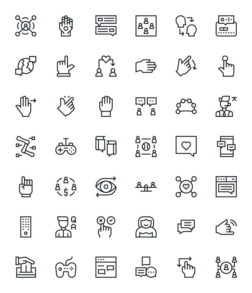 Interacción escalable conjunto presentando 42 píxel optimizado regular línea retina Listo íconos Vector Gratis