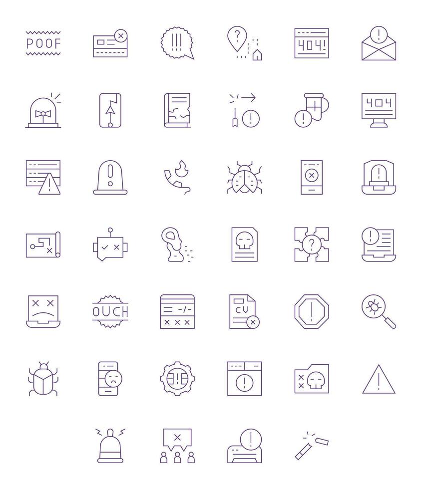 Delgado línea píxel alineado íconos desde error conjunto con 40 64 x 64 íconos Vector Gratis