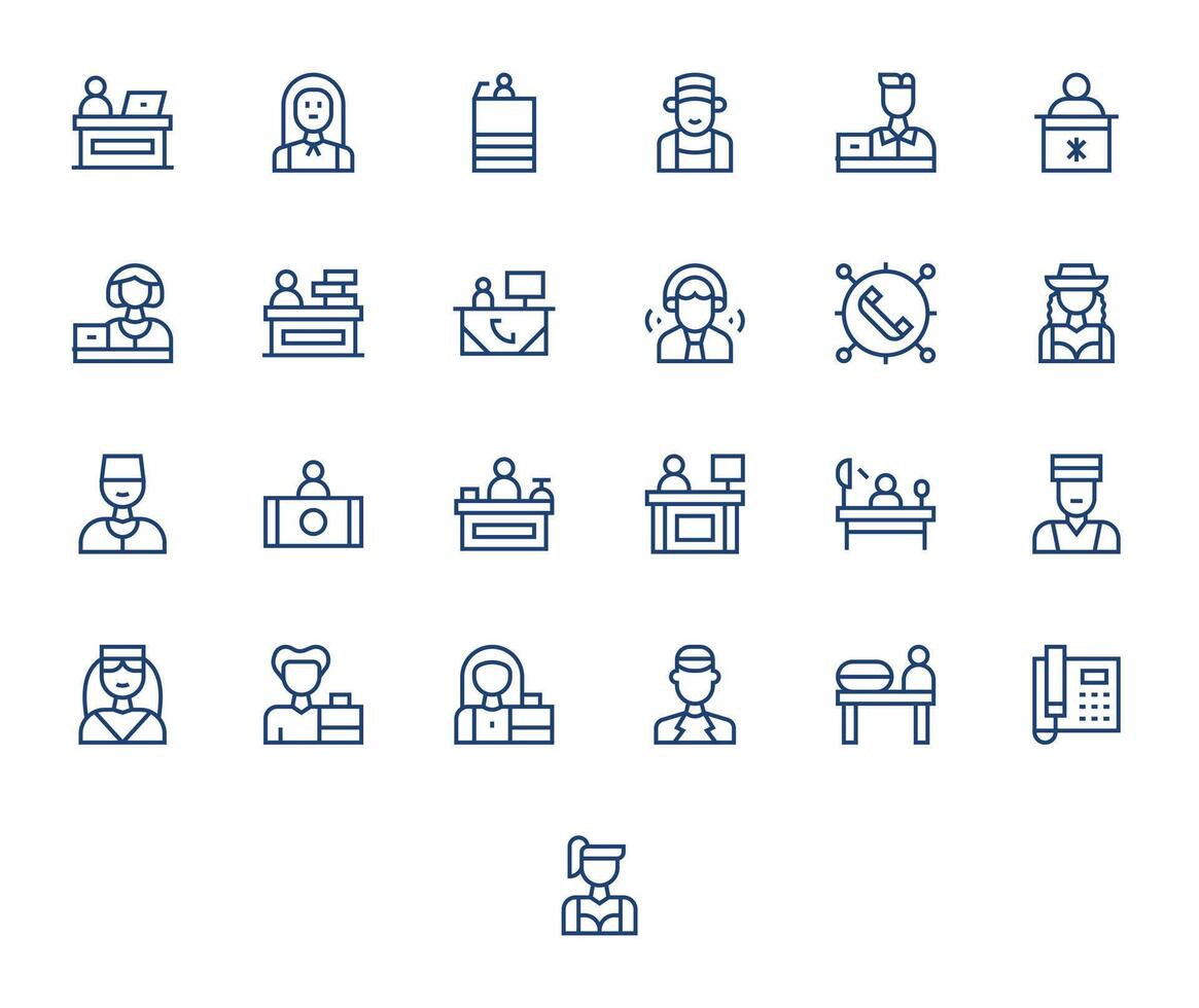25 alto resolución regular línea íconos para recepcionista con editable precisión vector