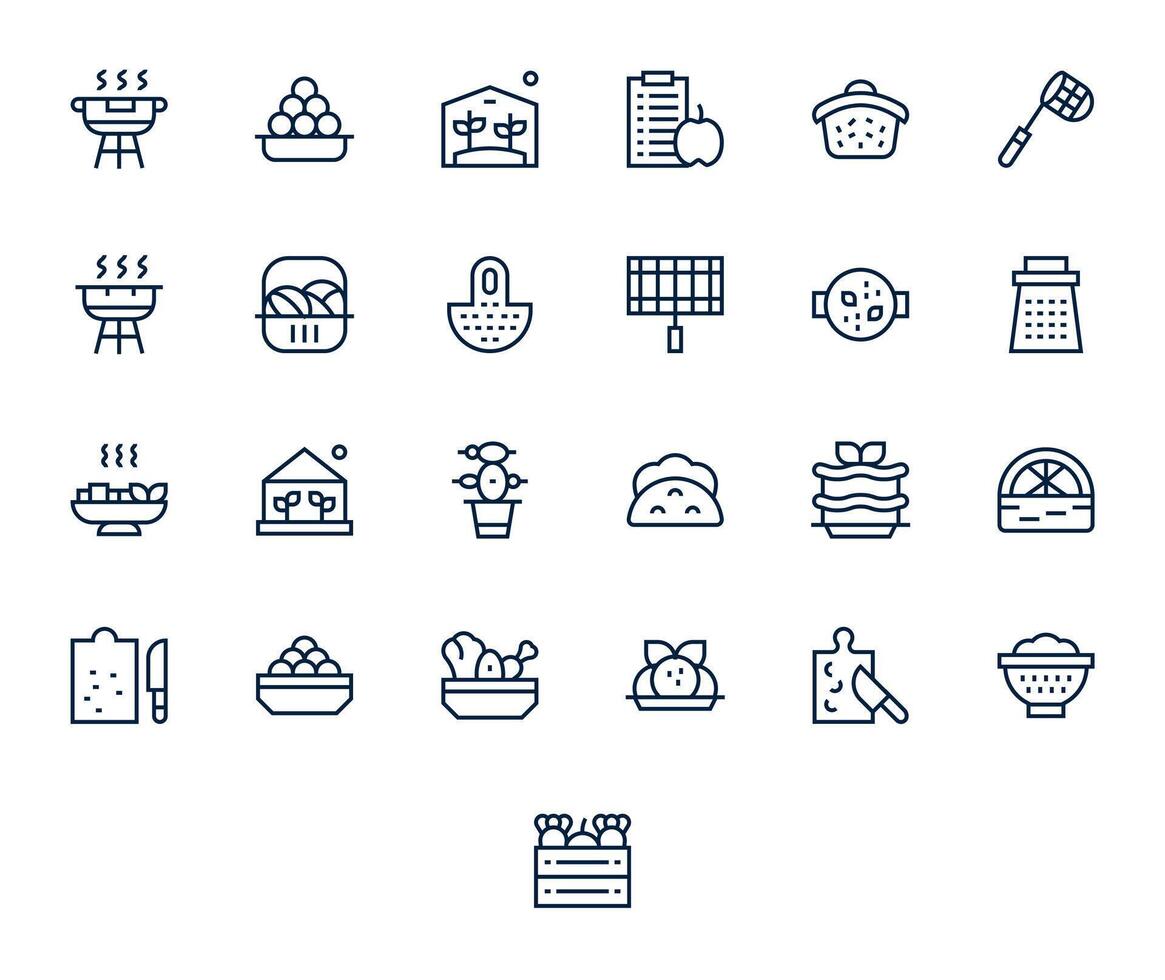 vegetales icono conjunto con 25 regular línea 256x256 píxel optimizado gráficos vector