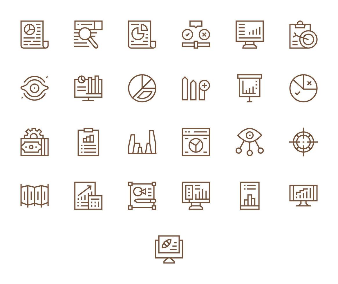 regular línea estilo datos análisis íconos con 25 256x256 píxel alineado diseños vector