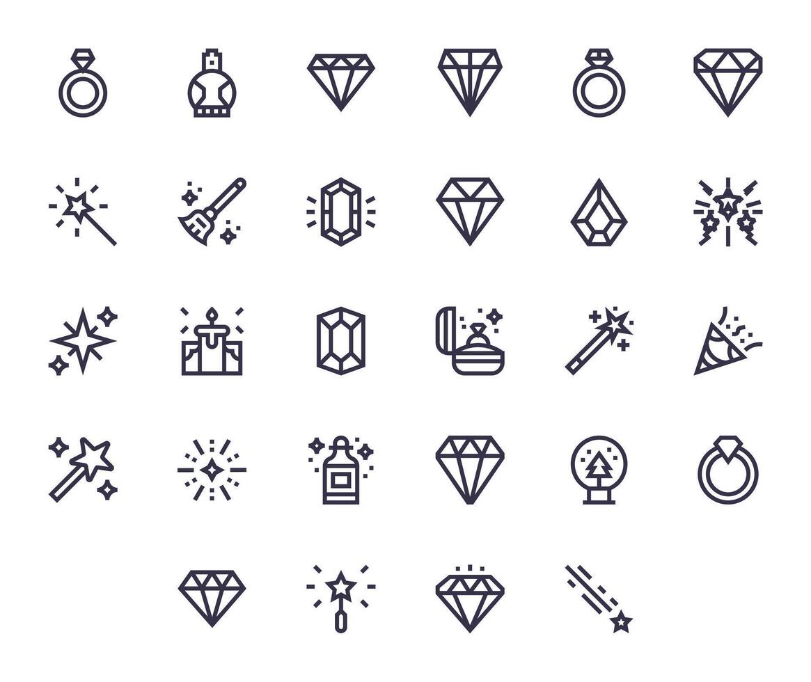 brillar icono conjunto con 28 negrita línea alto resolución píxel optimizado gráficos vector