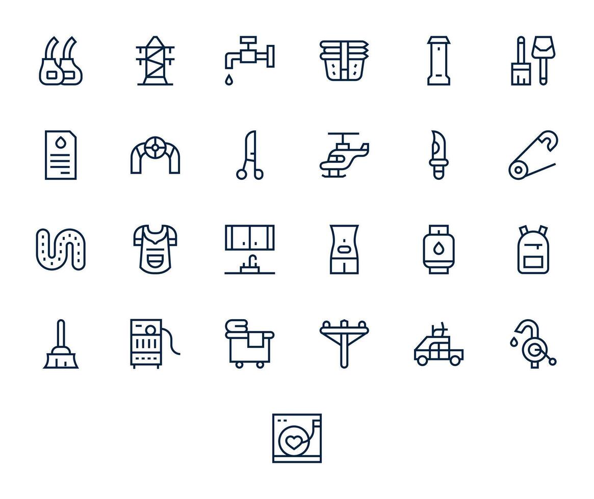 utilidad icono conjunto con 25 regular línea alto resolución detalle mejorado gráficos vector