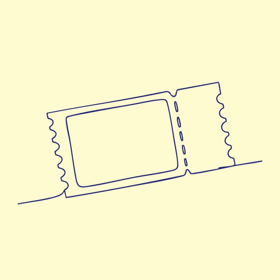minimalista línea dibujo de un rectangular boleto con perforado bordes en un suave pastel vector