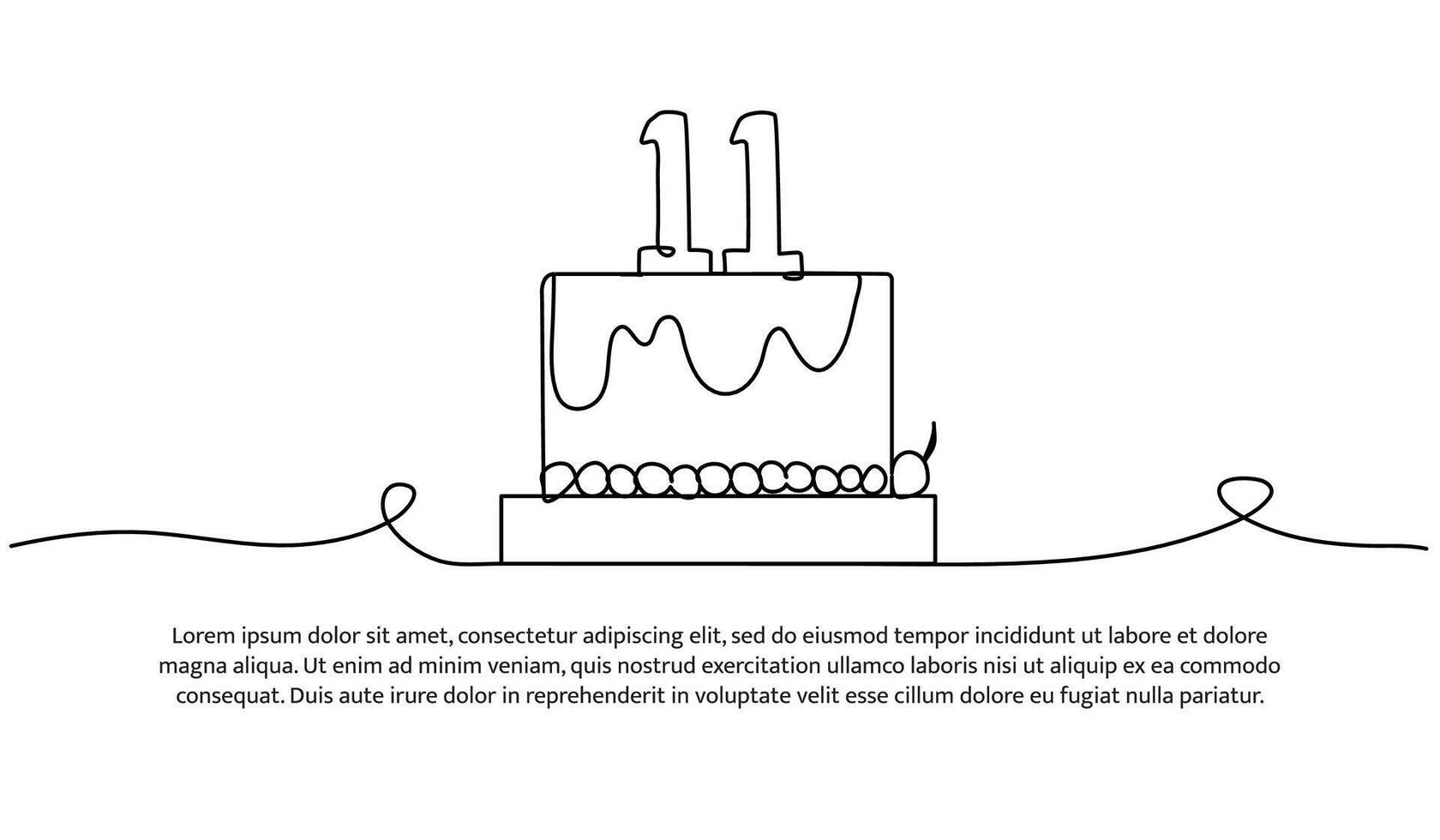 uno línea de pastel con número once velas resumen mínimo continuo línea. Vector Pro