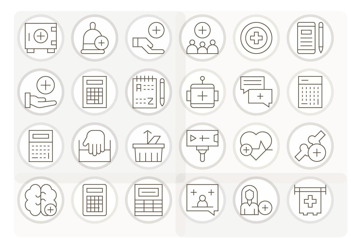 Delgado línea estilo añadir íconos con 24 256x256 píxel alineado diseños vector