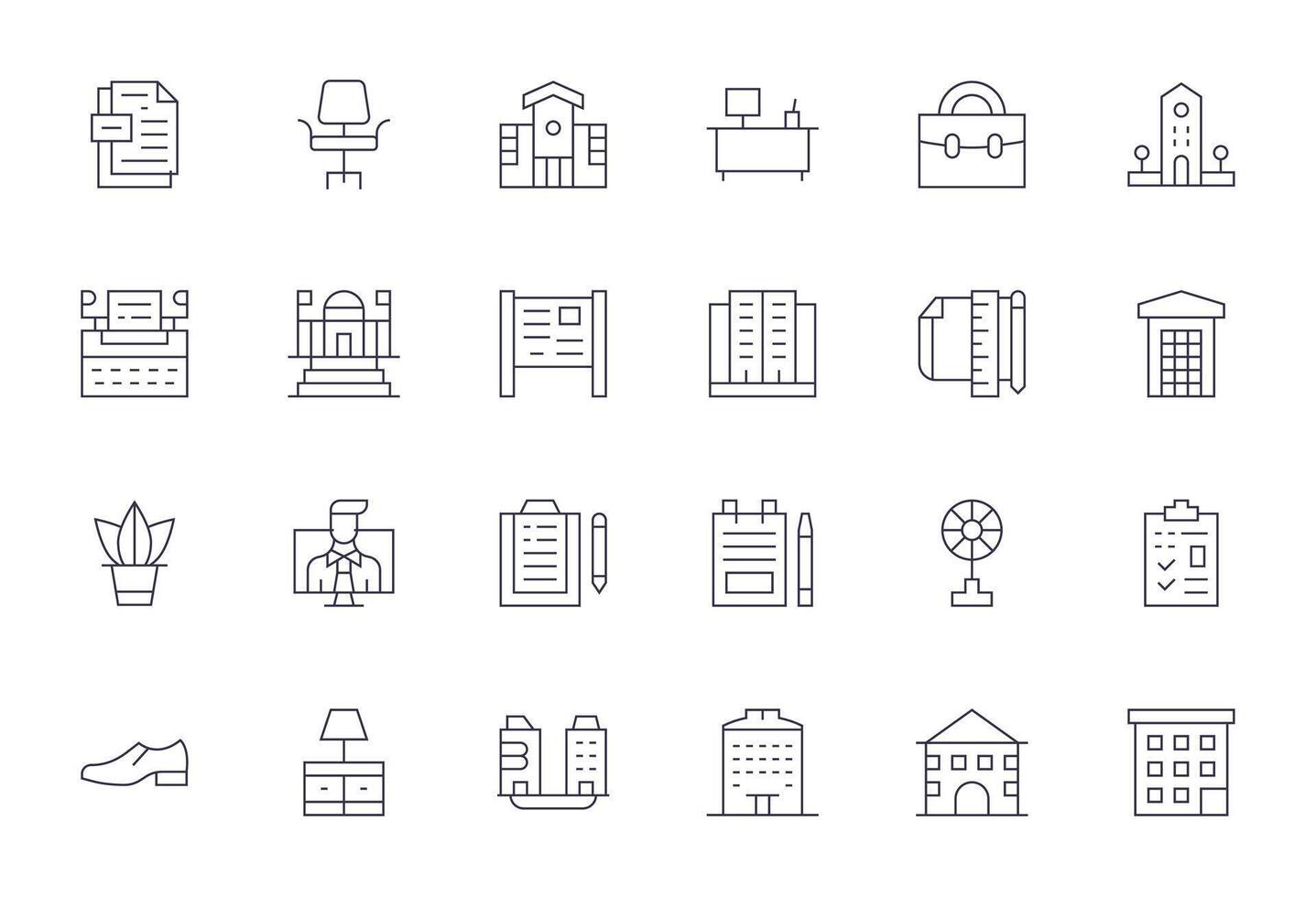 Delgado línea editable íconos desde oficina conjunto con 24 alto resolución íconos vector