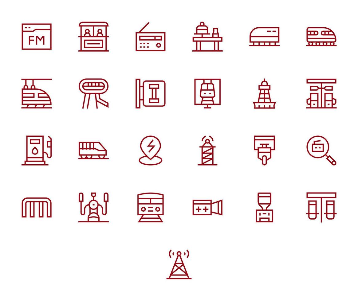 25 256x256 regular línea íconos para estación con píxel optimizado precisión Vector Gratis