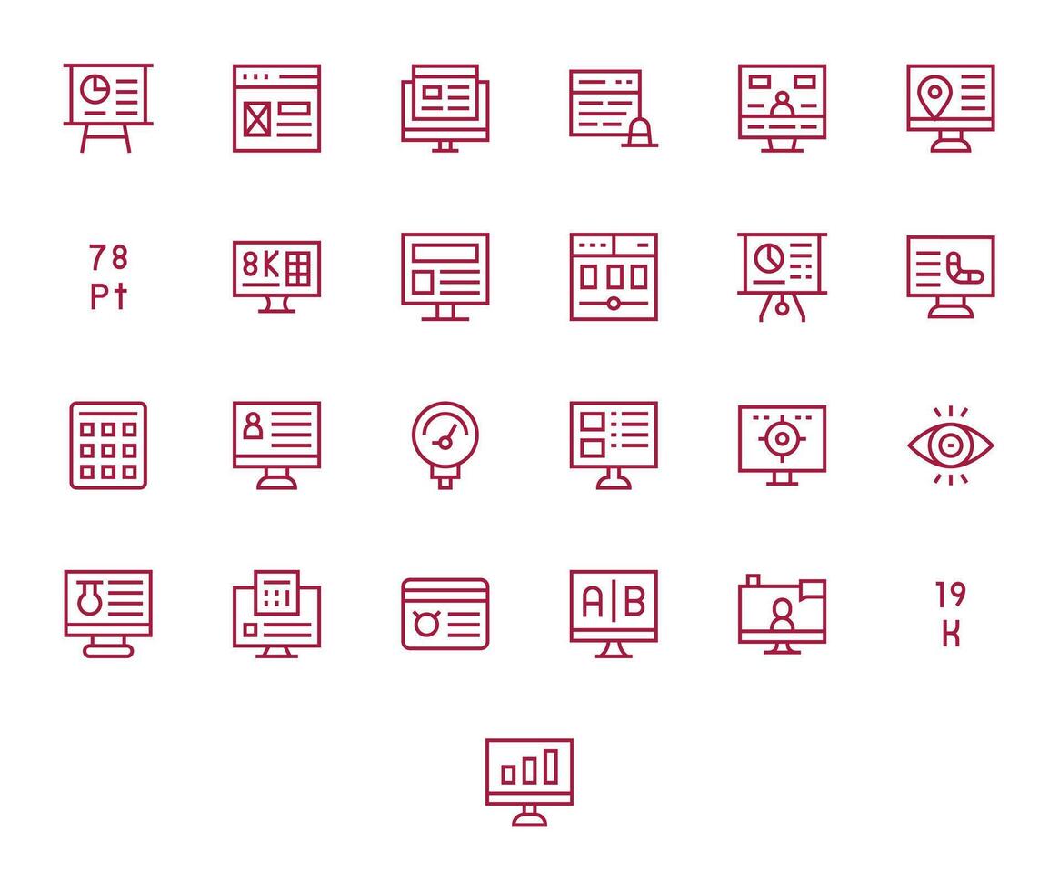 25 regular línea íconos desde datos monitor en 64 x 64 píxel optimizado calidad vector