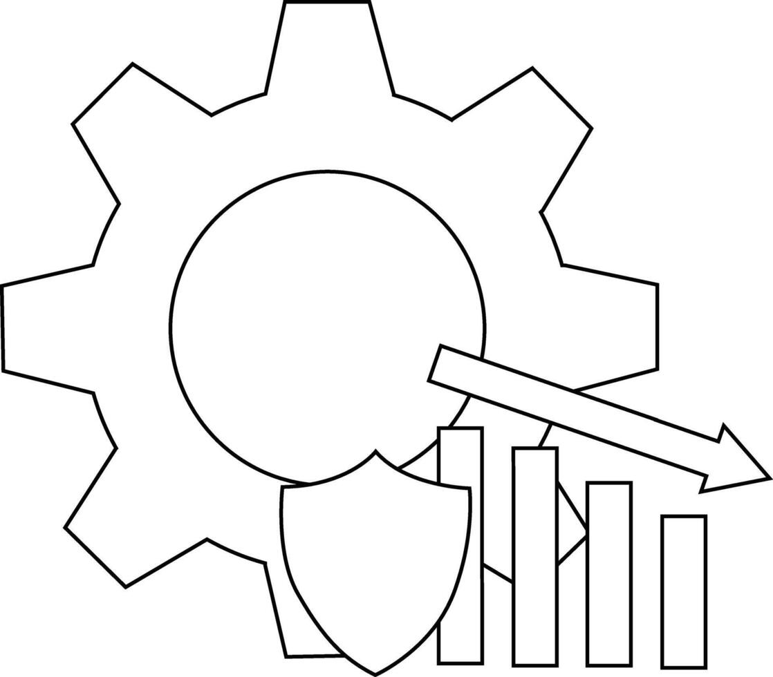 un engranaje con un circulo en el medio un proteger barras de varios tamaños y un flecha señalando hacia abajo vector