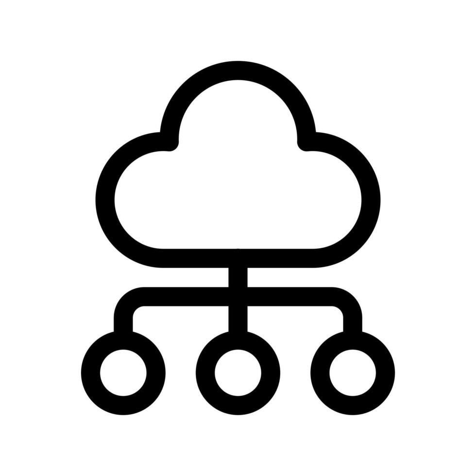 un lineal gráfico de un nube conectado a un red centro, representando nube red. vector