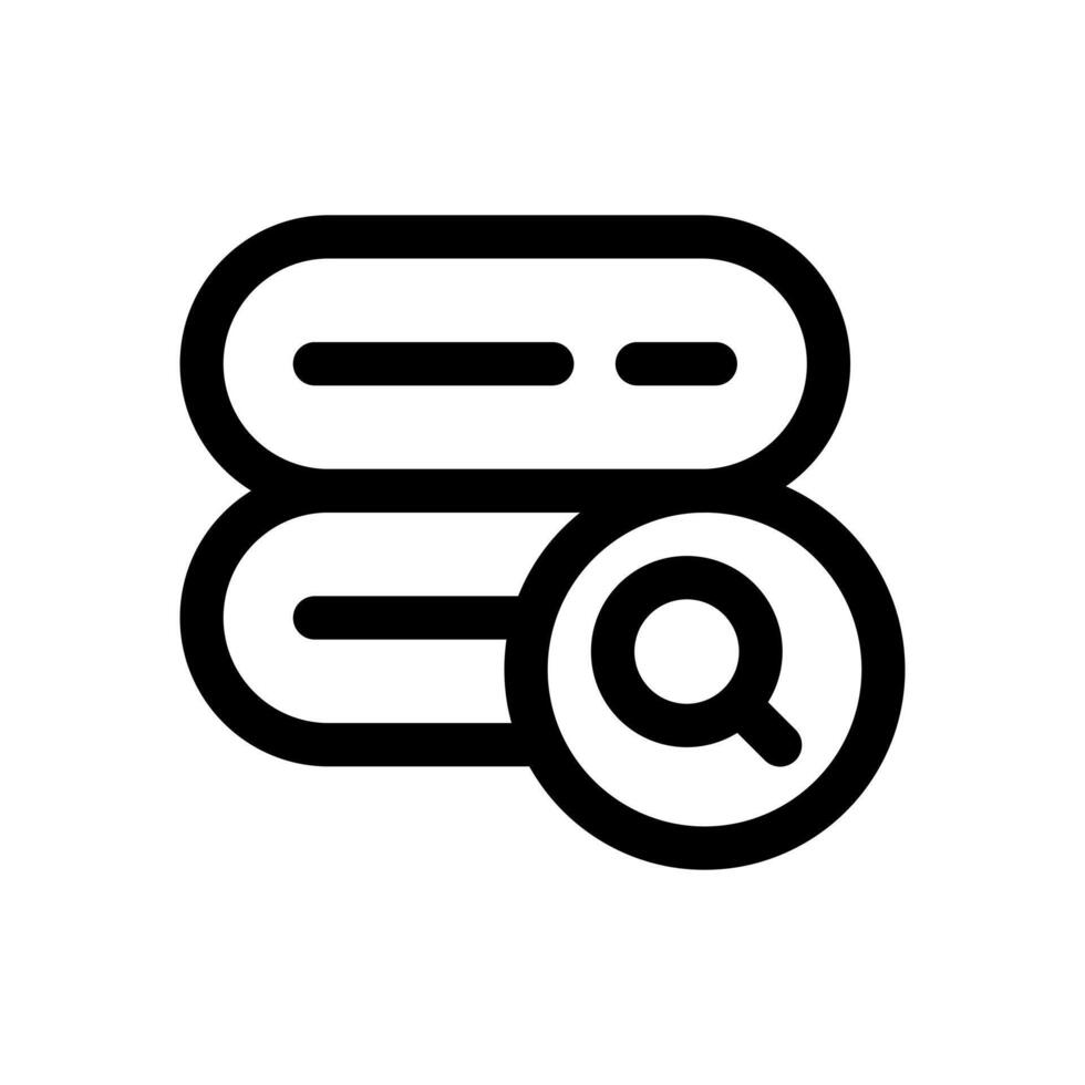 un sencillo línea icono de un servidor con un aumentador vaso, para servidor buscar o datos consulta. vector