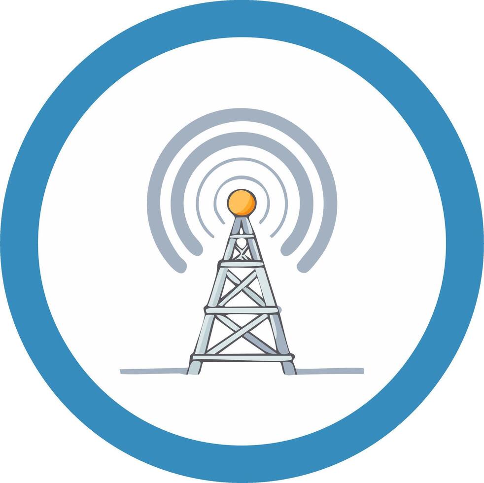 comunicación torre transmisor en un azul circulo para conexión, red y señal Vector Pro
