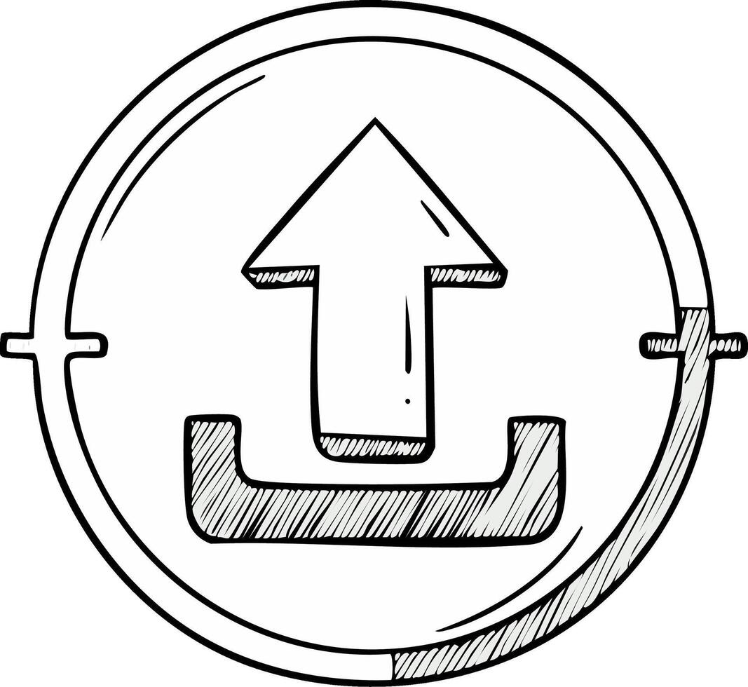 mano dibujado subir icono con un hacia arriba flecha en un círculo. bosquejo estilo ilustración para web diseño y aplicaciones Vector Pro