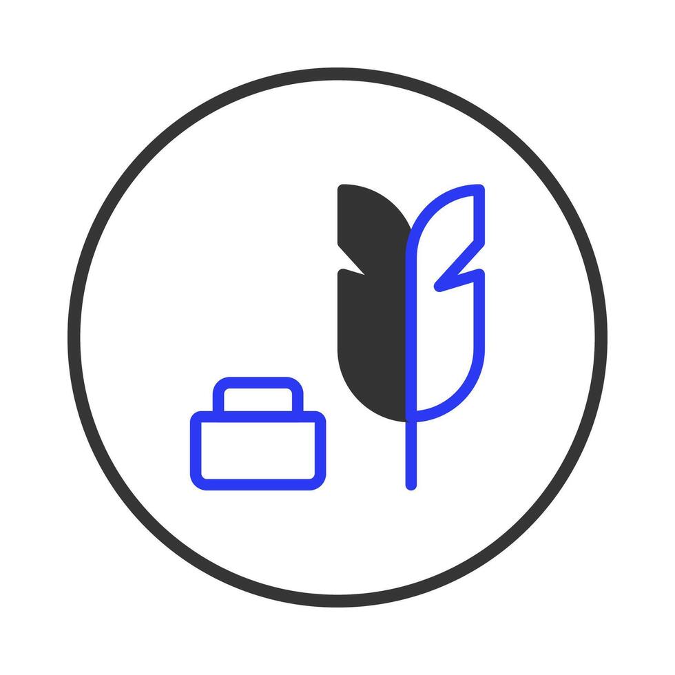 minimalista pluma icono en pie con un resumen objeto encerrado en un circulo marco para diseño vector
