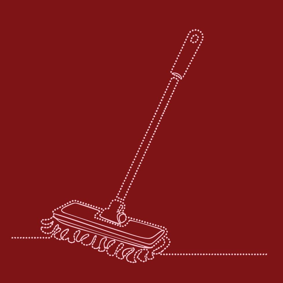 minimalista digital línea dibujo de un piso fregona con un largo encargarse de y rectangular limpieza cabeza en un sólido Vector Gratis