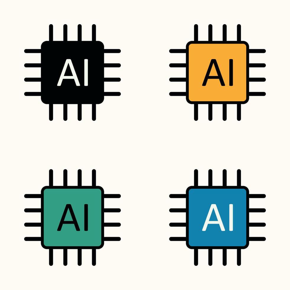 plano diseño ai circuito íconos representando artificial inteligencia hardware componentes vector