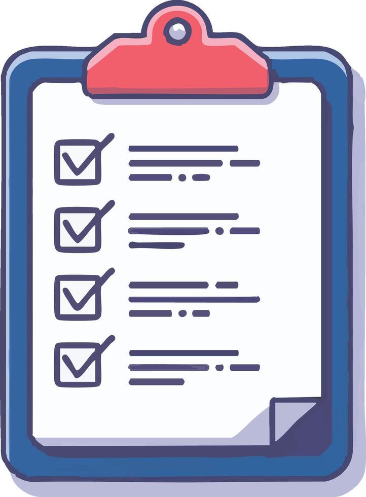 un portapapeles con un Lista de Verificación demostración varios Tareas terminado exitosamente Vector Pro