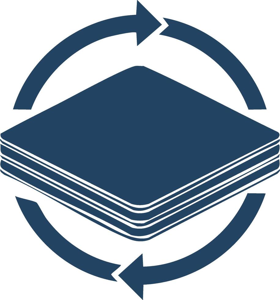 icono de apilado capas o materiales con circular flechas para reciclaje renovación o un continuo ciclo Vector Pro