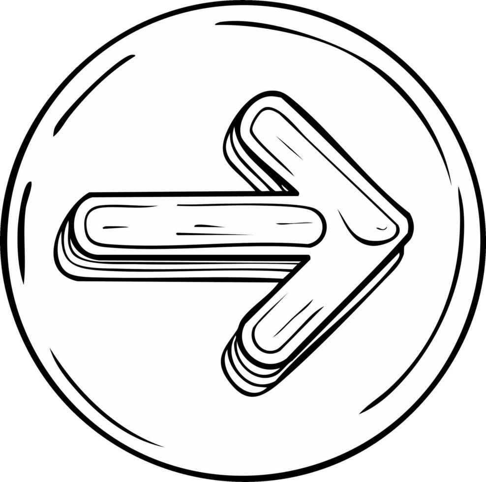 bosquejo estilo 3d flecha icono señalando Derecha en un circular botón Vector Pro
