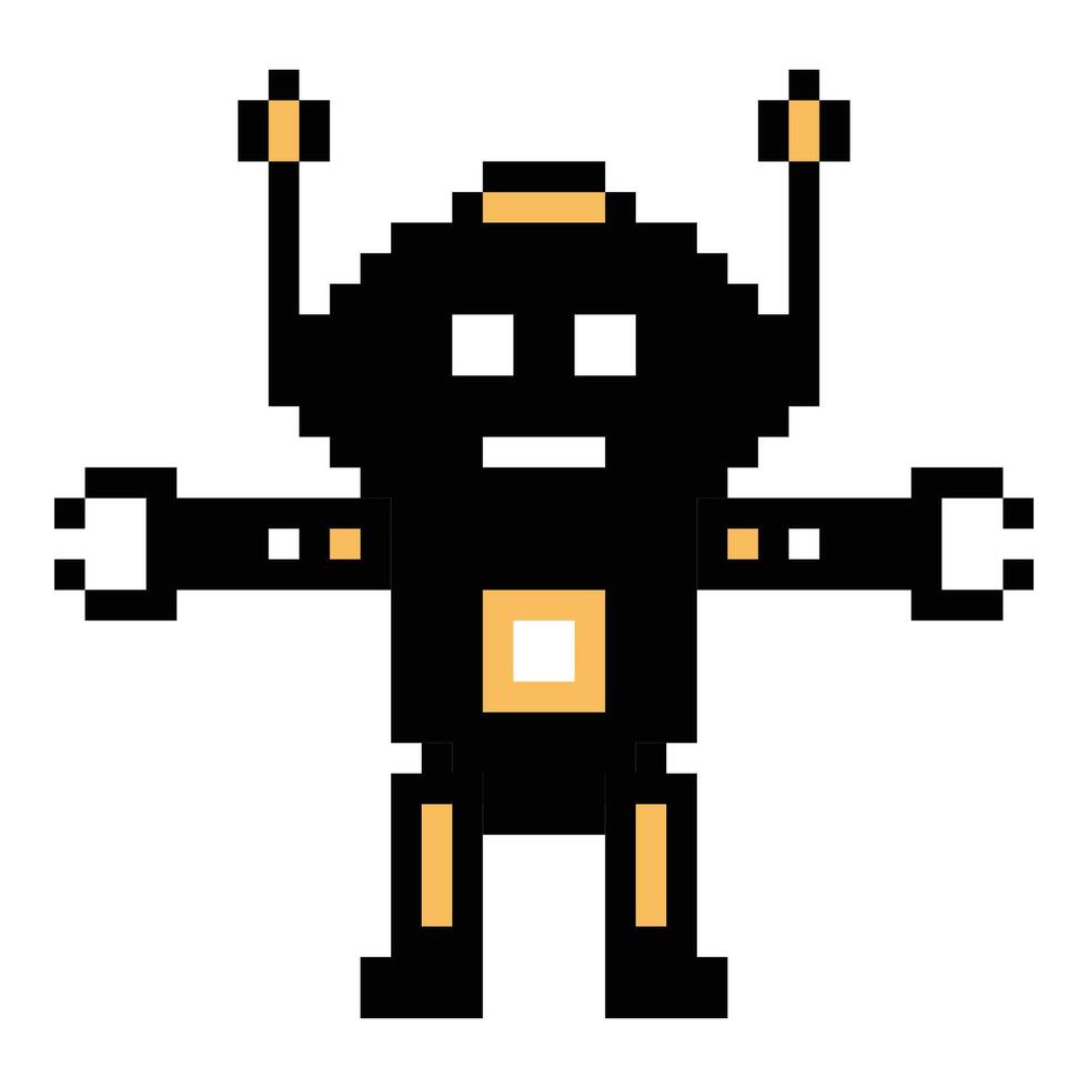 píxel Arte decoración de robots ai charla larva del moscardón ingeniero robótico 8 poco estilo juego. Vector Pro