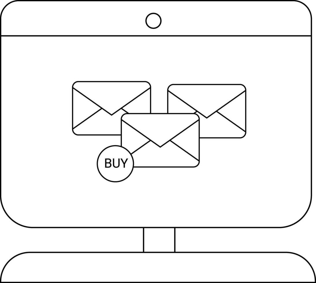 un computadora pantalla muestra Tres sobres y un comprar botón demostración un simplista gráfico Vector Pro
