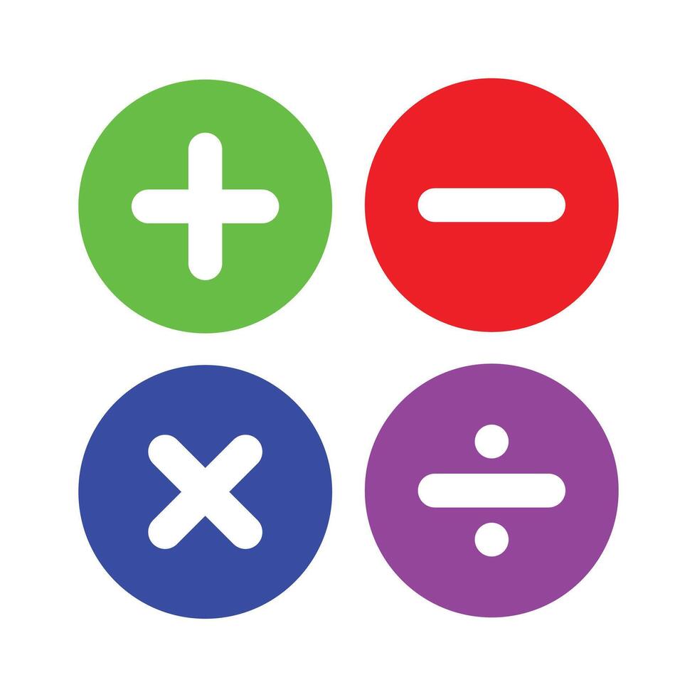 íconos representando básico matemáticas operaciones suma, sustracción, multiplicación, y división Vector Pro