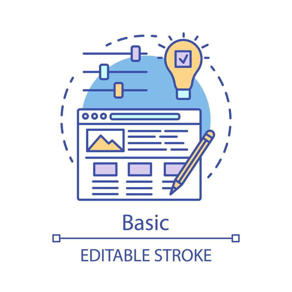 icono de concepto básico. ilustración de línea delgada de idea de precios de creador de sitios web. tarifa de desarrollo frontend. diseño de aplicaciones web. aplicación movil. dibujo de contorno aislado vectorial. trazo editable Vector Pro
