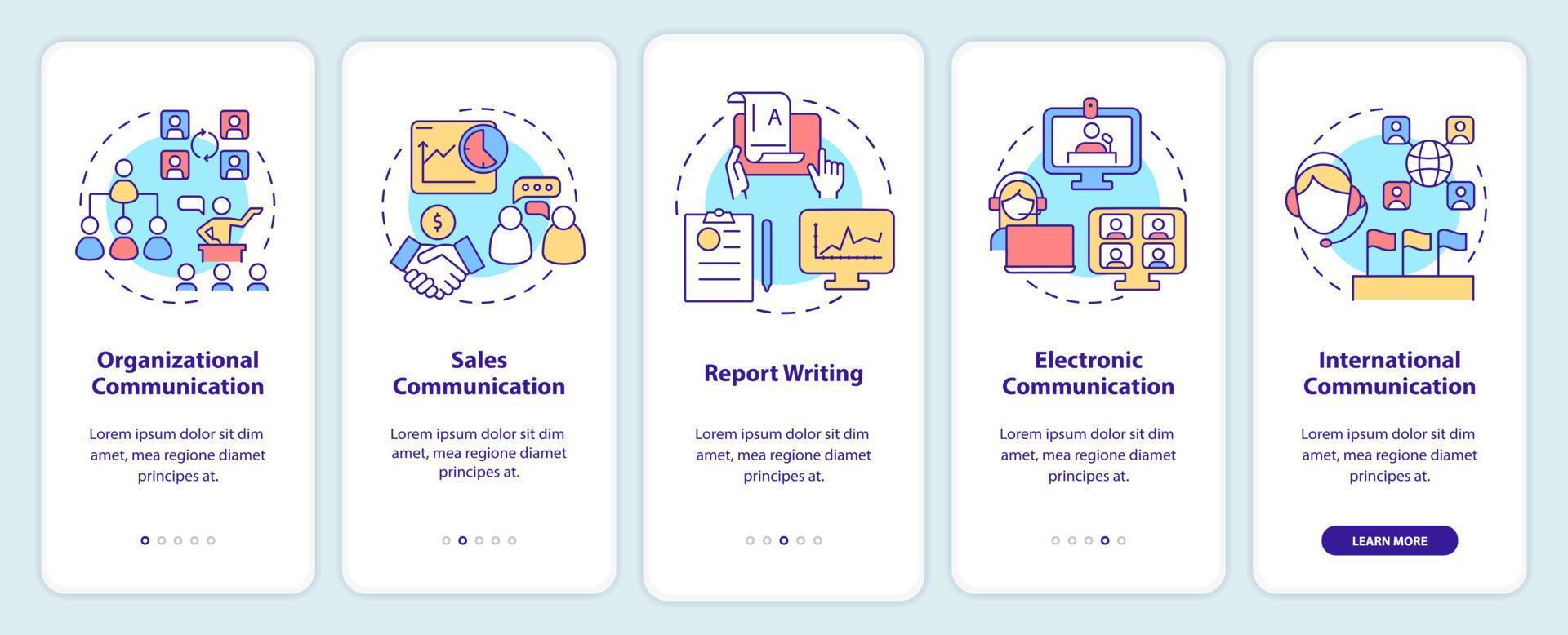 formularios de comunicación empresarial que incorporan la pantalla de la aplicación móvil. Tutorial de escritura de informes Páginas de instrucciones gráficas de 5 pasos con conceptos lineales. interfaz de usuario, ux, plantilla de interfaz gráfica de usuario. innumerables fuentes pro-negrita y regulares utilizadas Vector Pro