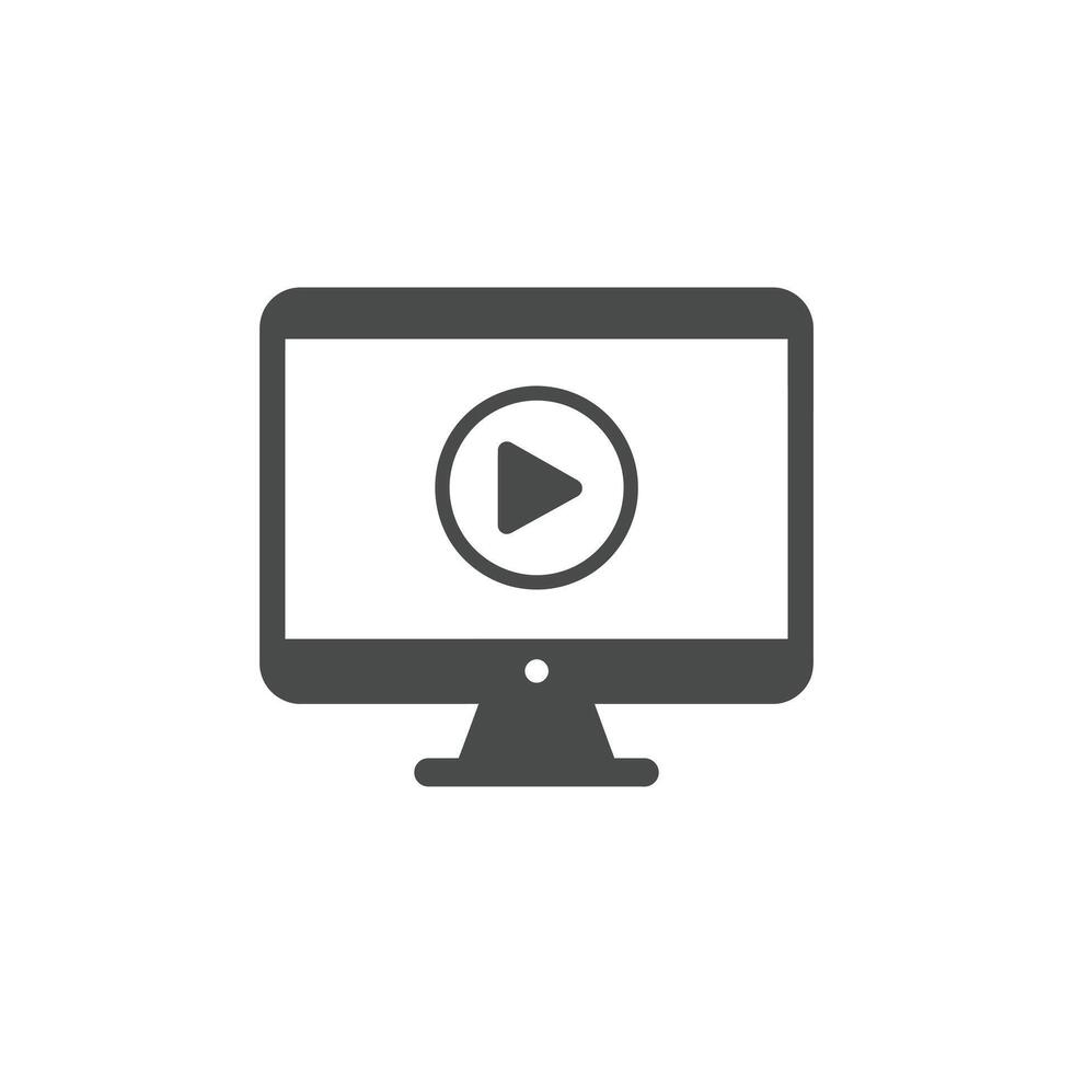 sólido icono de un computadora pantalla con un jugar botón para en línea formación cursos y seminarios web Vector Pro