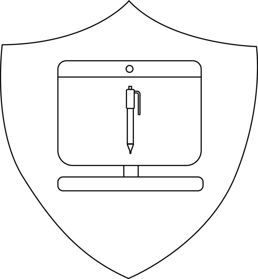 un proteger contiene un monitor con un bolígrafo en sus pantalla en pie en un estar Vector Pro