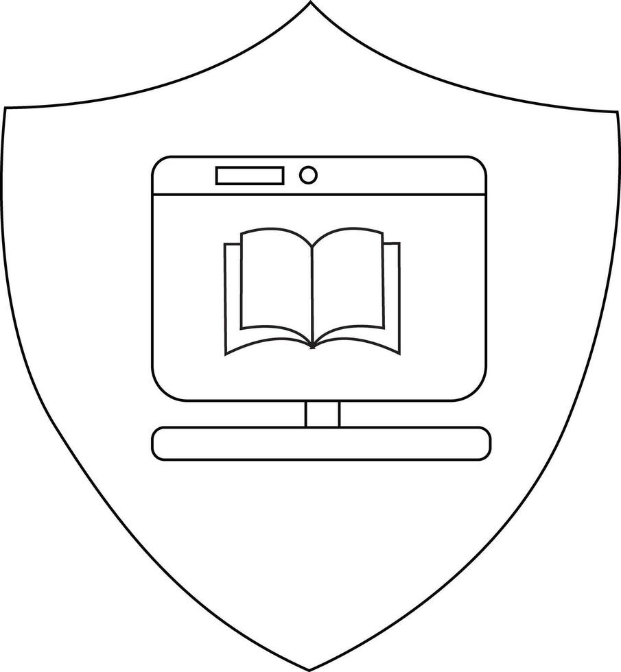 un proteger muestra un computadora con un libro en sus pantalla Vector Pro