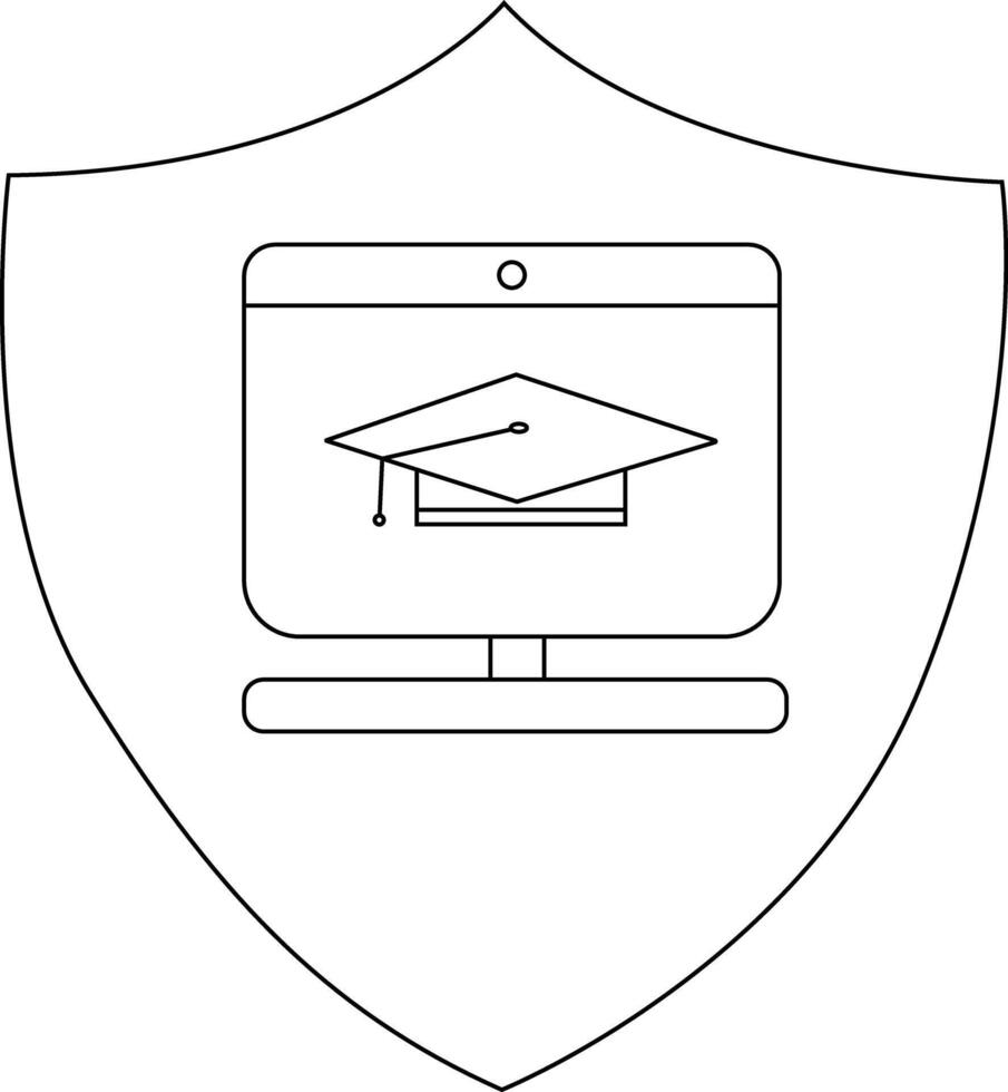 proteger emblema presentando un computadora monitor con un graduación gorra Vector Pro