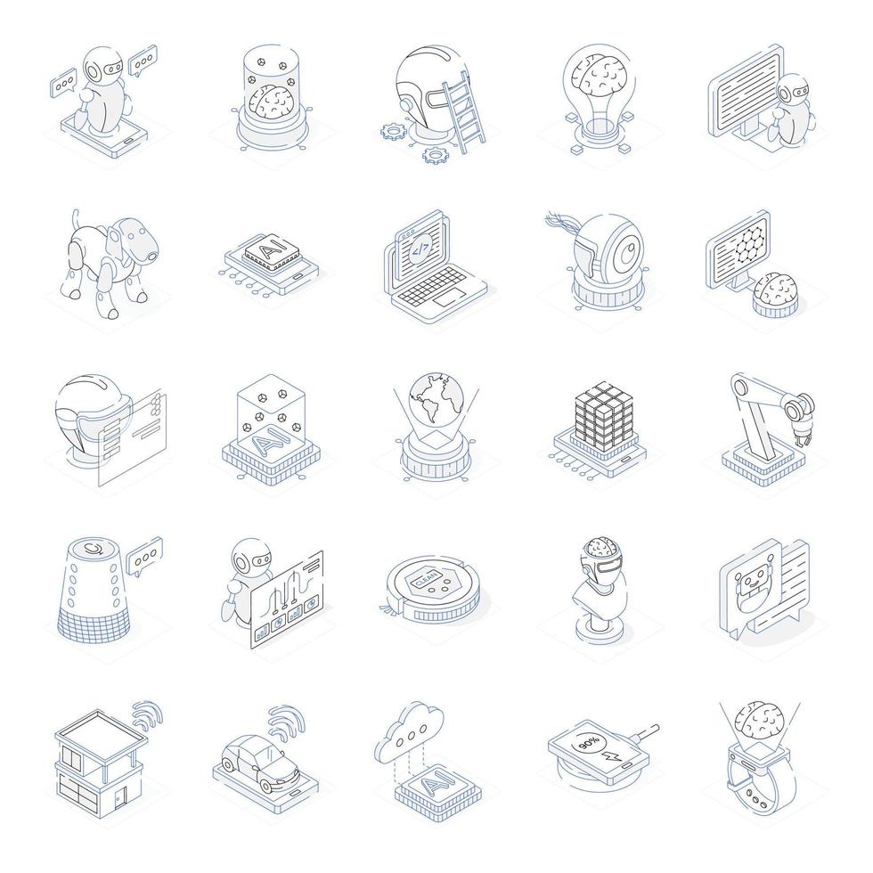 conjunto de iconos isométricos de esquema de inteligencia artificial Vector Pro