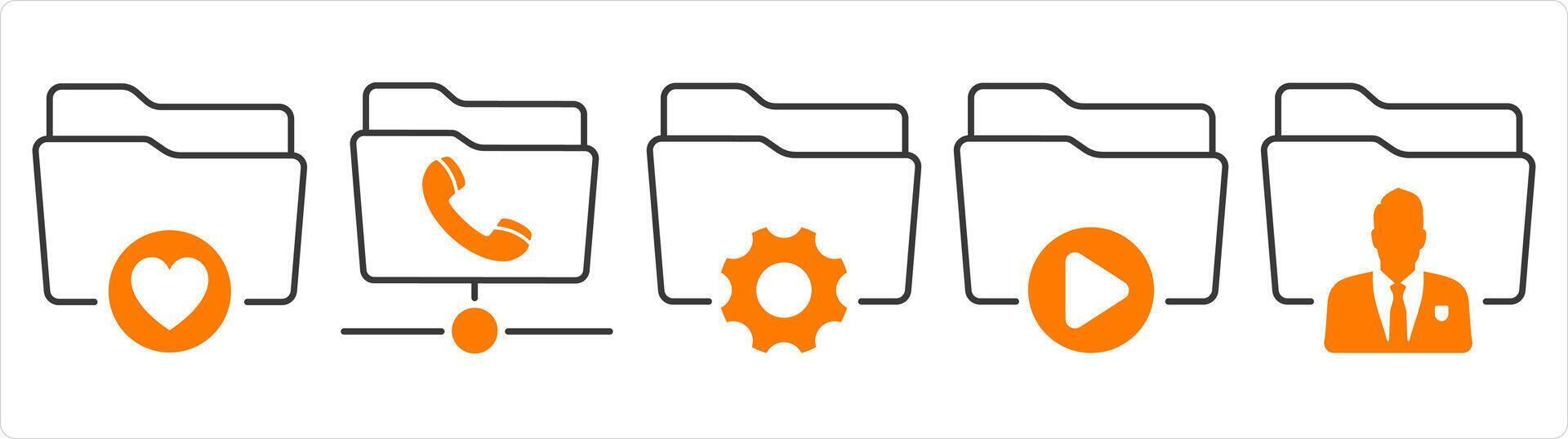 un conjunto de 5 5 documento íconos como favorito carpeta, llamada carpeta, carpeta ajuste Vector Pro