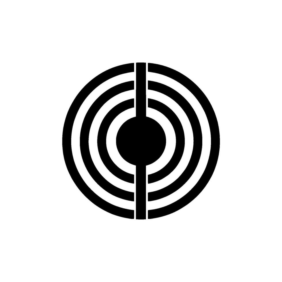 un minimalista resumen geométrico circular presentando concéntrico arcos cruzado por un vertical divisor línea y un central sólido circulo creando un moderno óptico espejismo o símbolo Vector Pro