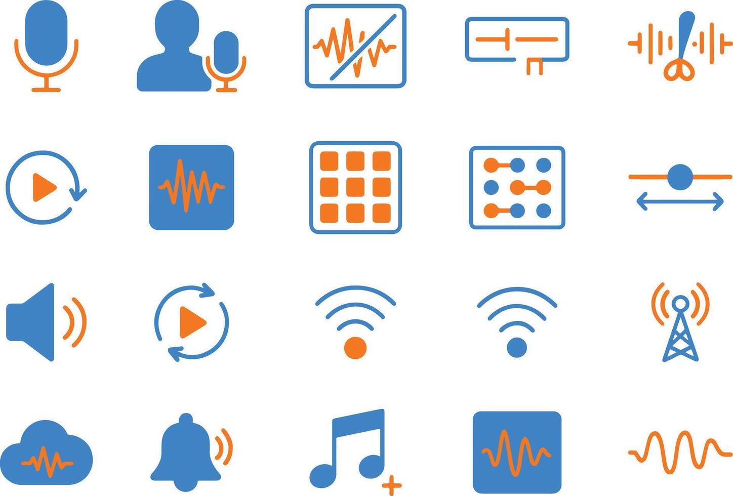 conjunto de audio y sonido íconos en moderno plano estilo para web y gráfico diseño ui o ux Vector Pro
