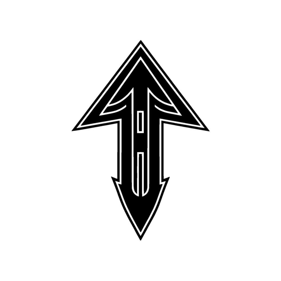 un estilizado geométrico resumen flecha símbolo con agudo angular líneas y contrastando contornos Vector Pro