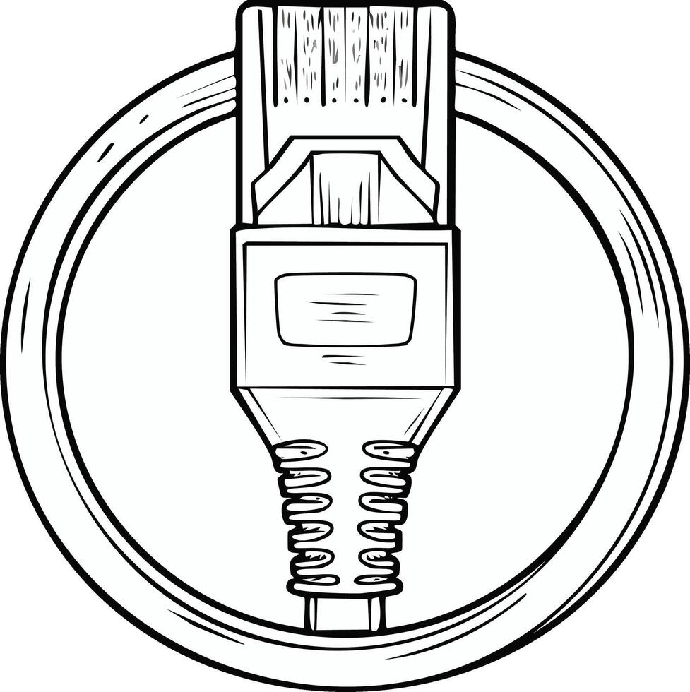 mano dibujado rj45 conector dentro circulo marco, computadora red ethernet Internet cable icono, datos conexión tecnología ilustración Vector Pro